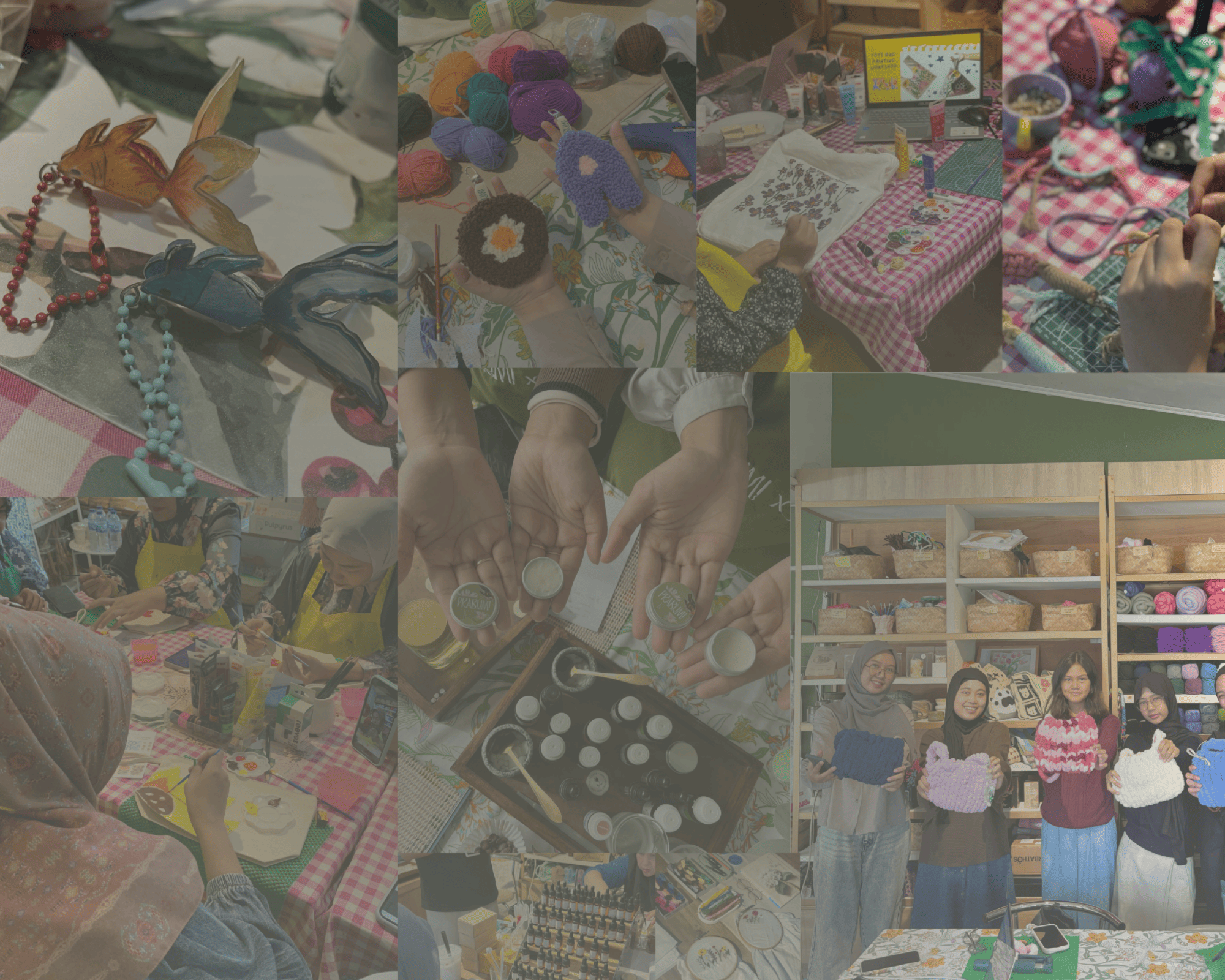 Setiap kelas dipandu oleh pengajar dan perajin yang ahli di bidangnya — dari rajut, punch needle, hingga parfum alami.