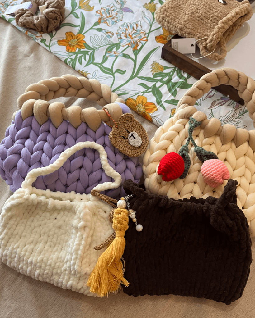 Produk rajut kami dibuat secara handmade dengan penuh ketelitian dan cinta pada setiap simpul benangnya. Setiap karya memiliki detail unik yang menjadikannya lebih dari sekadar aksesori ia adalah kehangatan yang bisa kamu bawa ke mana saja.