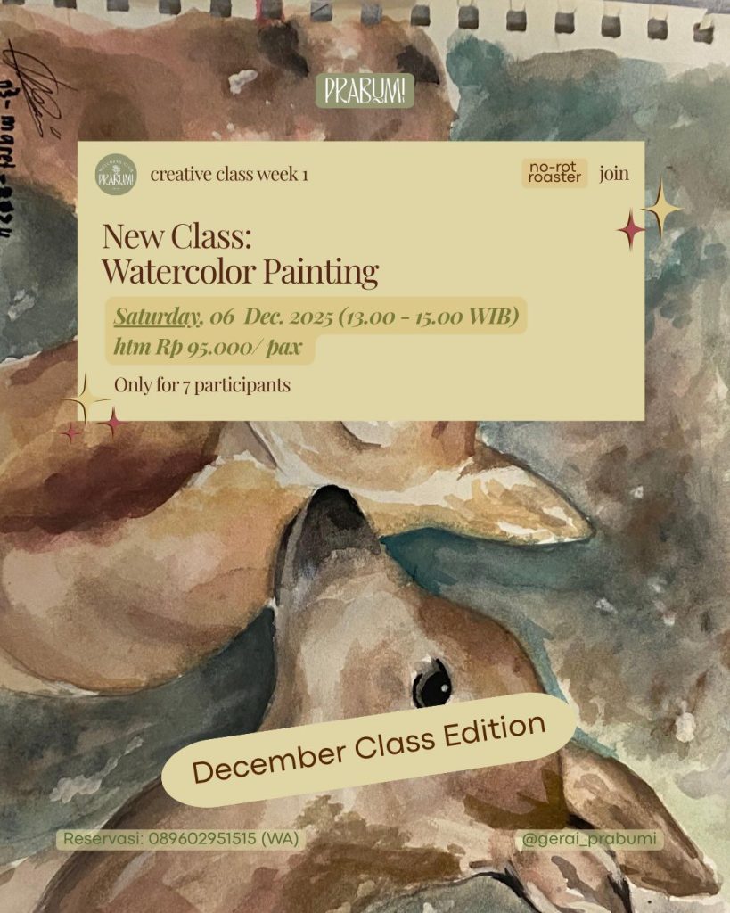 Menarik!! Desember menghadirkan kelas baru untuk kamu “Lukisan Cat Air” hadir sebagai kelas terbaru di Gerai Prabumi. jangan sampai ketinggalan yaa